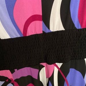 Stretchy, Smocked waist, 4.5” black panel, 12.5” across