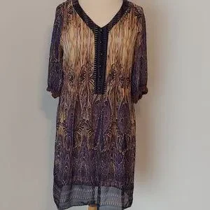 Rabbit Rabbit Rabbit Designs. NWOT. Size 10. Beautiful women's purple paisley short sleeve dress.