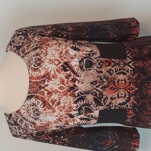 Rabbit Rabbit Rabbit Designs. NWOT. Beautiful women's multicolored 3/4" sleeve dress. Invisible zipper in back.