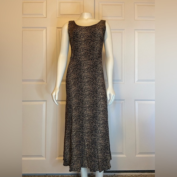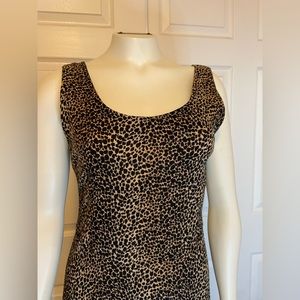 Women’s casual wide tank dress with leopard print design, made from 100% rayon.