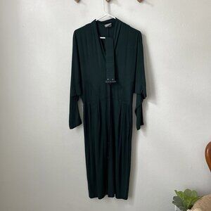 Rabbit Rabbit Rabbit Designs green belted midi dress fitted sleeves L