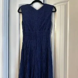 Like new, worn once. Navy blue, sheath with lace overlay, v-neckline. Great for graduation or date night!