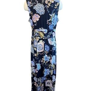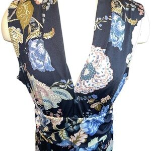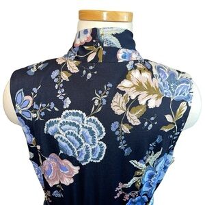 Rabbit Rabbit Rabbit Dress Size 14 Blue Floral Sleeveless Low V-Neck Pullover