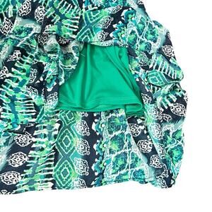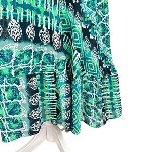 Rabbit Rabbit Rabbit Dress Womens SZ 12 Navy Blue Green Flowy Midi Boho 70's