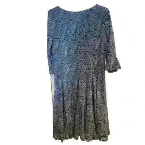 This charming dress from Rabbit Rabbit Rabbit is perfect for any occasion. The blue floral pattern and V-neckline give it a delightful, feminine touch. The short sleeves and knee-length make it perfect for summer, spring, or fall.