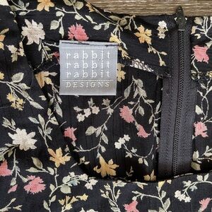 Elegant dress with floral design. Features a blend of colors on a black base.