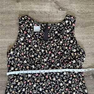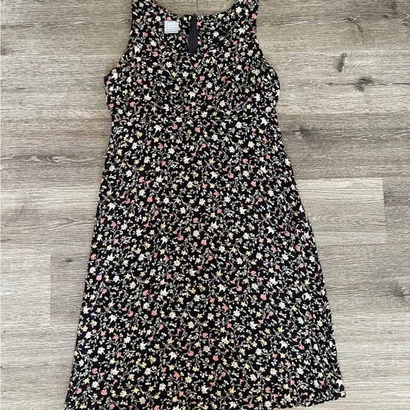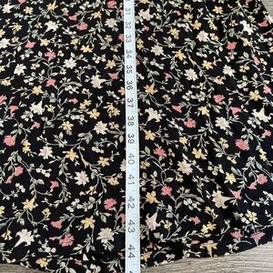 Elegant dress with floral design. Features a blend of colors on a black base.
