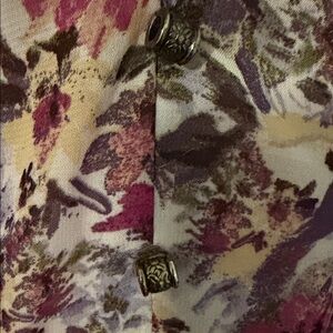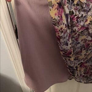 Charming floral dress with a V-neck design. Features a blend of vibrant colors.