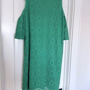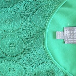 Rabbit Rabbit designs, Elegant green lace dress with cold shoulder design. Perfect for any occasion with a built in full liner slip. Super comfortable and stylish from a smoke free home.