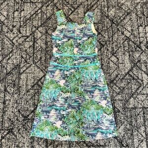 This stunning sundress by Rabbit Rabbit Rabbit features a vibrant green and blue print, perfect for spring wear. The sleeveless design with a square neckline offers a flattering silhouette, while the midi length adds a touch of elegance. Ideal for sunny getaways, this dress combines style and comfort effortlessly.