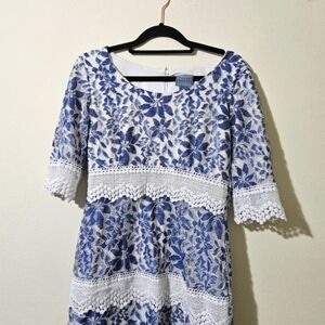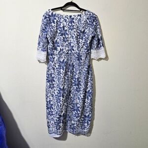 excellent condition size small scoop neck lace overlay knee length elbow length sleeves