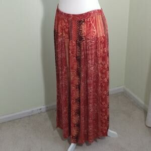 Rabbit Rabbit Rabbit Design Maxi Skirt Women's Size 12 Multicolor Orange Red Floral Pint Boho Slit panels
