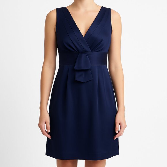 Elevate your event style with this Rabbit Rabbit Rabbit Designs navy cocktail dress—timeless, classy, and perfect for weddings, parties, or elegant dinners. Crafted in a silky satin-like fabric with pleated details and a flattering empire waist tie, this dress offers both sophistication and comfort.