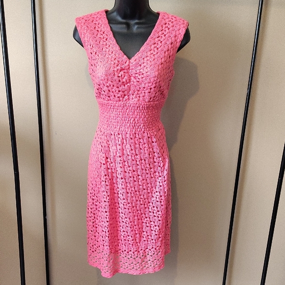 Chic pink crochet design. Flattering fit. Ideal for any occasion.