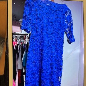 Chic long sleeve lace dress. Vibrant royal blue color. Perfect for elegant occasions.