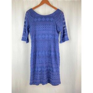Rabbit Rabbit Rabbit Size M Blue Lace Overlay Dress Wedding Guest Stretch Party