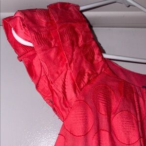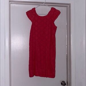 Chic red dress with intricate lace detailing. Ideal for stylish outings. Comes with beige belt