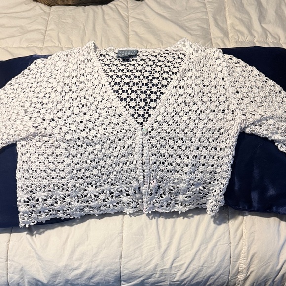 Elegant crochet design. Lightweight and breathable. Perfect for layering.