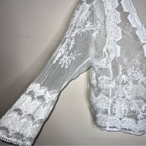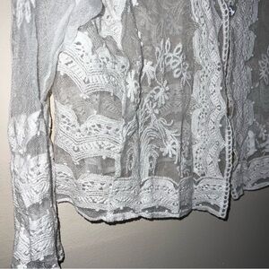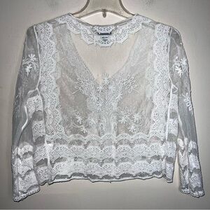 Rabbit Rabbit Rabbit White Cropped Lace and Crochet Button Front Top Size Large