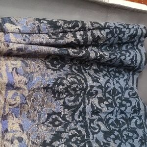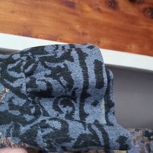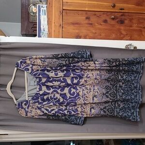 Rabbit Rabbit Rabbit Womens Dress Blue Tan Pleated Neckline Lined Sz 16W EUC. Raglan sleeves. Ruffled bell sleeve. Pre-owned, very good condition. (3341)
