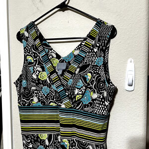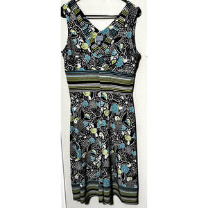 Rabbit Rabbit Rabbit Womens Dress Sz 14 Brown Turquoise Sleeveless Knee Length