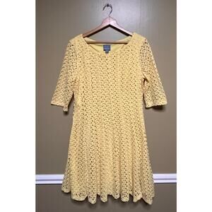 Rabbit Rabbit Rabbit Yellow Mid Length Lace Overlay Dress
