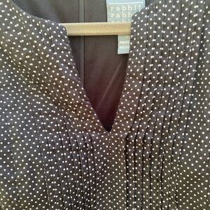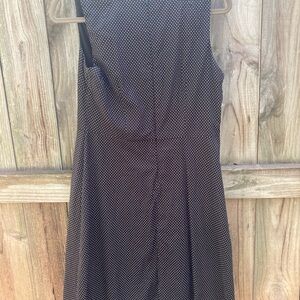 Lovely sleeveless black dress with white polka dots. Hidden back zipper. Fully lined. Pleated front with a V. Pet and smoke free home. Size 10