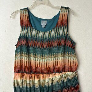 Rabbit Rabbit Rabbit dress sz 16 orange blue sleeveless pleated southwest maxi
