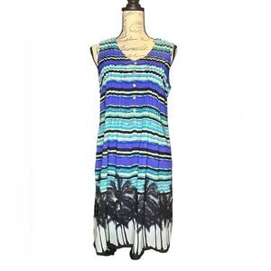 Rabbit Rabbit Rabbit V neck dress with black palm trees at the bottom. EUC Has 6 buttons down the front (decoration only) Fully lined.