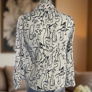 Elevate your style with this chic black and white top. Featuring an abstract design, this piece is perfect for any occasion.