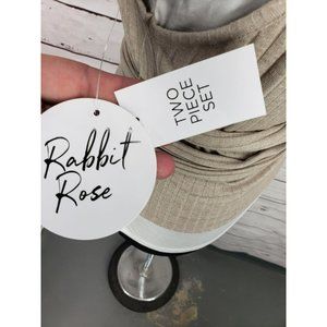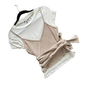 Rabbit Rose Woman White T Shirt Ribbed Brown Tan Tank Top Wrap Set Size Medium M