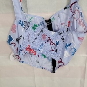 Rabbit Rose XL Boned Elastic Back Blue Hook & Eye Front Clousure Crop Top