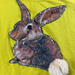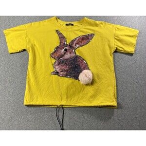 The Rabbit Sequin T-shirt in Yellow is a stylish and eye-catching top for women. Made from cotton, it offers a comfortable fit in a regular size M/L. The sequin accents add a touch of sparkle and personality to this wardrobe essential. Perfect for adding a pop of color to any outfit, this t-shirt is versatile and can be dressed up or down for any occasion.