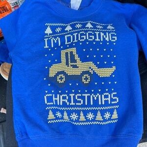 Rabbit Skins Kids Construction Sweatshirt. Blue Crewneck with “I’m Digging Christmas” and a bulldozer holiday design. Very good condition.