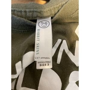 Rabbit Skins short sleeve t-shirt. Green. Young Wild & Three. Size 3.