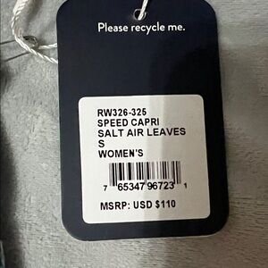 NWT Rabbit Speed Capri -Salt Air Leaves print. Zipper pocket on back and pockets on each leg.