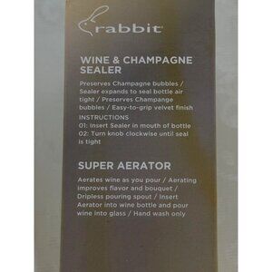 Rabbit Wine & Champagne Sealer With Super Aerator Gold Tone