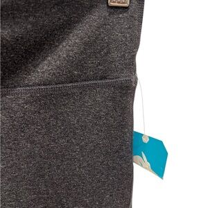 these Rabbit women’s running leggings in size XS. Crafted in California, these gray leggings feature black contrast panels, a back zip pocket, and ankle zippers for easy on and off. The adjustable interior drawstring ensures a secure fit, while the reflective details help keep you visible in low-light conditions. Perfect for running, training, or everyday active wear.