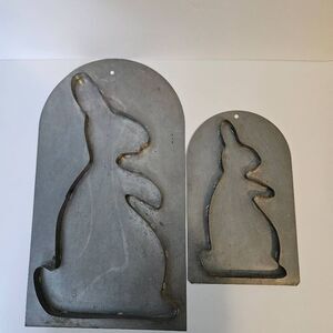 16 X 9 inches and 10 X 6 inches. Can be used as cookie cutters or as decor. Excellent condition. Open to reasonable offers.