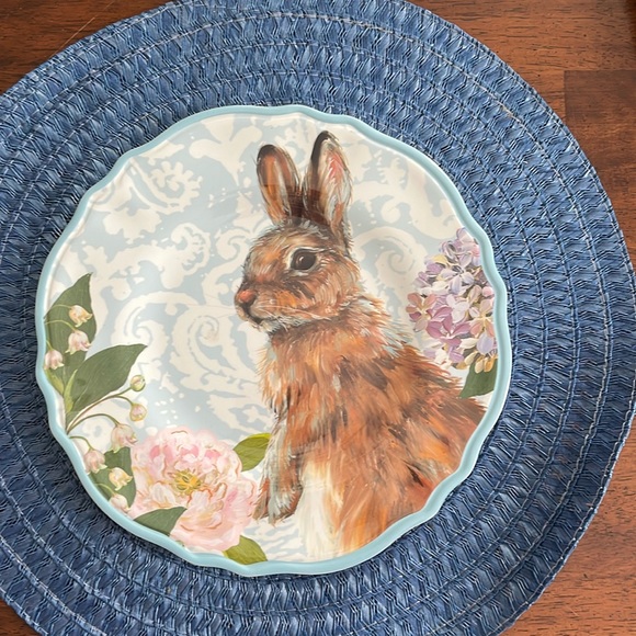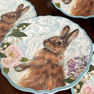 Set of 4 rabbit salad /:dessert melamine plates. Plates are dishwasher and microwave safe. Plates are in great condition.