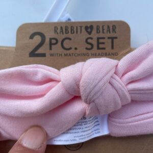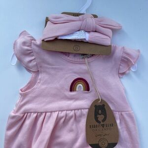 Rabbit+Bear 2-Piece Bubble Romper and Headband Set Sz 3-6 Months.