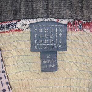 Rabbit Rabbit Rabbit Womens 12 Midi Dress Yellow Blue Smocked Bodice Hanky Hem