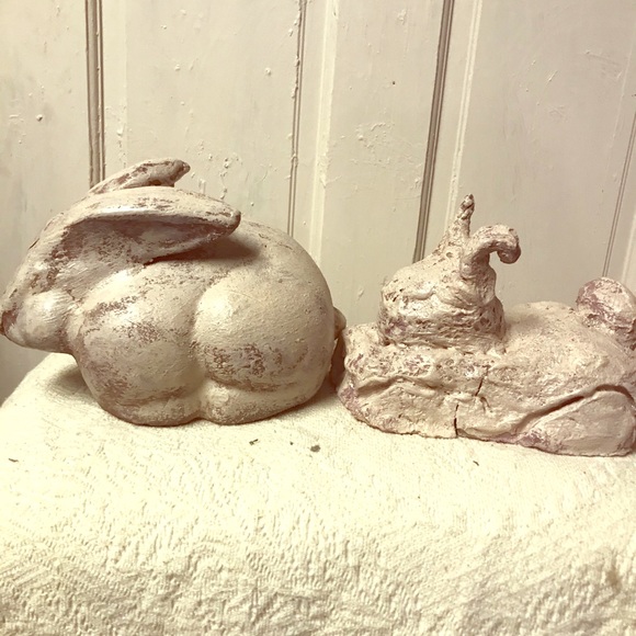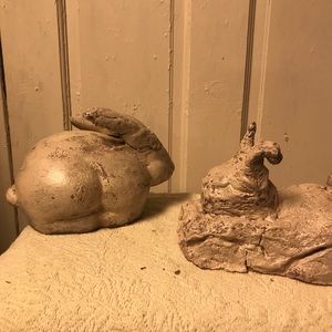 Two handmade rabbits out of Mississippi hill dirt and Clay.