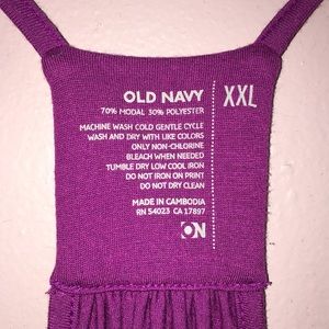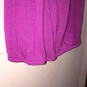This purple racer back tank top has a gorgeous ruffle detail on the front neckline. The hemline on the bottom has an elastic band for a cute fit!