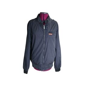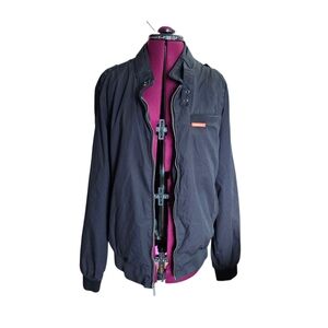 This racer-style jacket offers elegant and unique features such as a throat latch, inner and exterior pockets, and epaulets for added style.