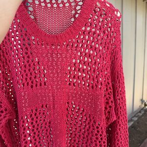 Racer Worldwide Cross Net Sweater Pink Grunge Rock Punk Crochet Unisex Small EUC