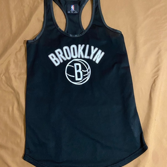 Mesh Brooklyn Nets RacerbackTank with leather details.