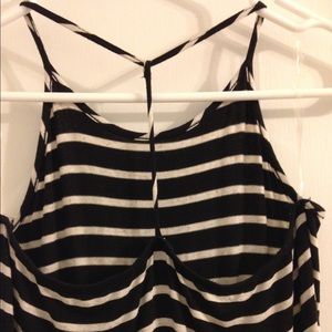 Black and white (cream) racer back tank dress. Form fitting in top with flare skirt. It is a size Large, but fits like a small.