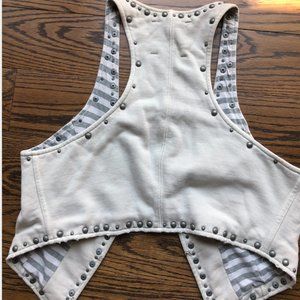 Free People Studded Vest, Cropped, Cream and Silver, white/grey inside stripe, 3 Loop Closures, 100% Cotton (Size 10, fits small)