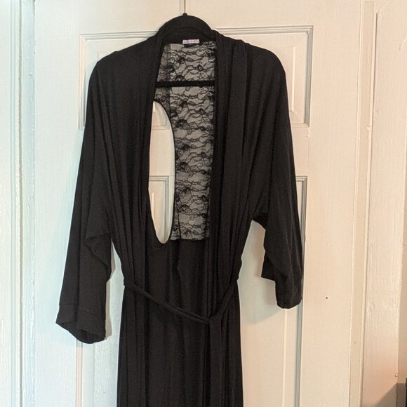 Racerback Robe in black cotton and lace from SavageXFenty. SO silky and comfortable!